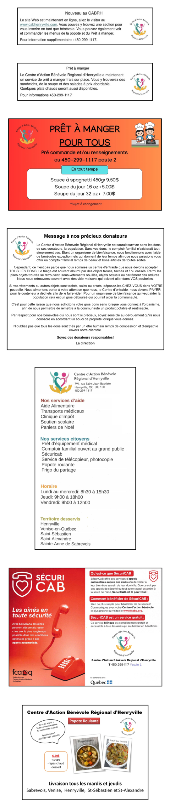 - Services offerts et horaire du Centre d’Action Bénévole Régional d’Henryville